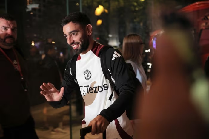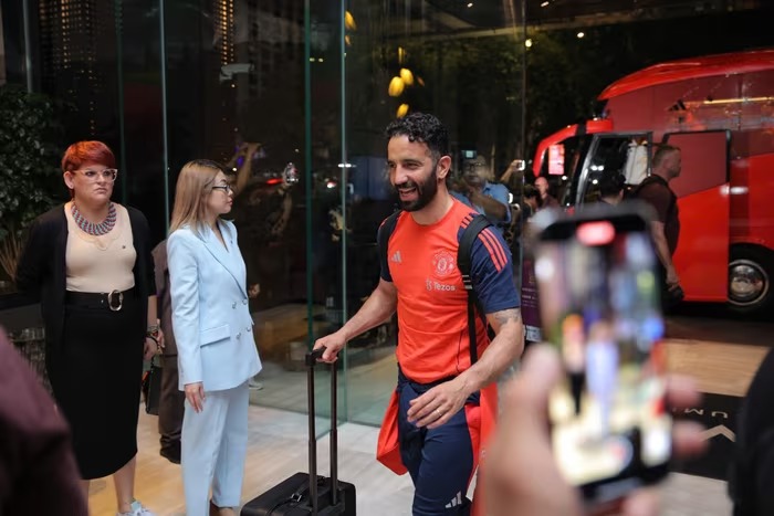 Bất chấp trải qua hành trình dài và mới vừa kết thúc mùa giải ở Premier League chỉ một ngày trước đó, HLV Ruben Amorim vẫn để lộ gương mặt rạng rỡ khi xe buýt chở toàn đội tới khách sạn.