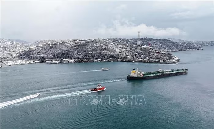 Con tàu di chuyển qua Eo biển Bosphorus nối Biển Đen và Biển Marmara ở Istanbul, Thổ Nhĩ Kỳ. Ảnh: THX/TTXVN