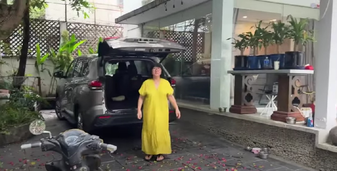 Tới nơi, Quách Tuấn Du tỏ ra vô cùng choáng ngợp trước biệt thự bề thế của vợ chồng Cẩm Vân – Khắc Triệu. Vợ chồng nữ nghệ sĩ sống trong một ngôi biệt thự rộng lớn, phủ bóng cây xanh ở trung tâm quận Phú Nhuận, TP.HCM.