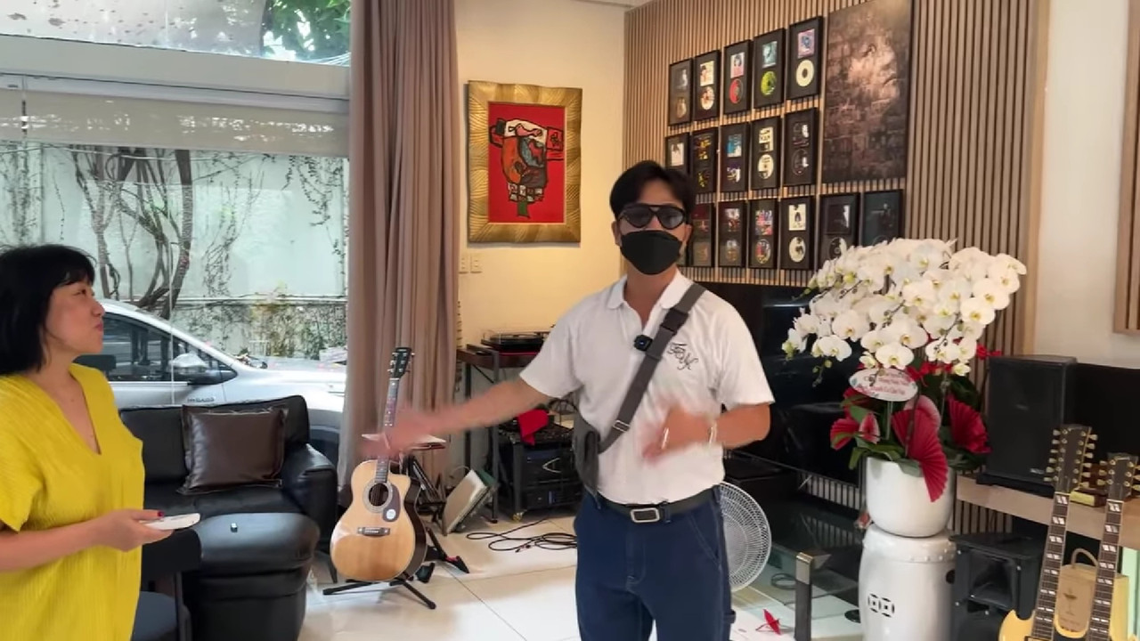 Nữ danh ca hồ hởi khi thấy Quách Tuấn Du tới, đon đả chạy ra đón khách một cách niềm nở và dẫn vào tham quan nhà.