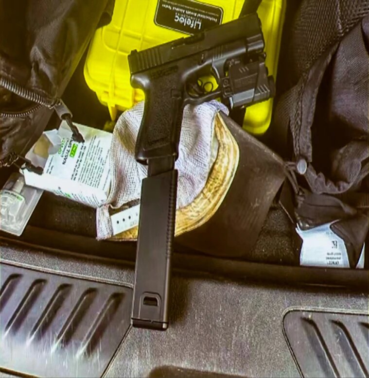 Một trong 2 nghi phạm, người mà Bouchard không nói rỏ danh tính, đang có mang một khẩu súng lục màu hồng, kiểu AR với băng đạn được nạp sẳn đạn, trong một chiếc ba lô được cất dưới một chiếc xe khi các sĩ quan cảnh sát trờ đến. Một cây súng khác bị tịch thu là loại khẩu súng ngắn bán tự động Glock với 40 viên đạn được nạp sẳn.