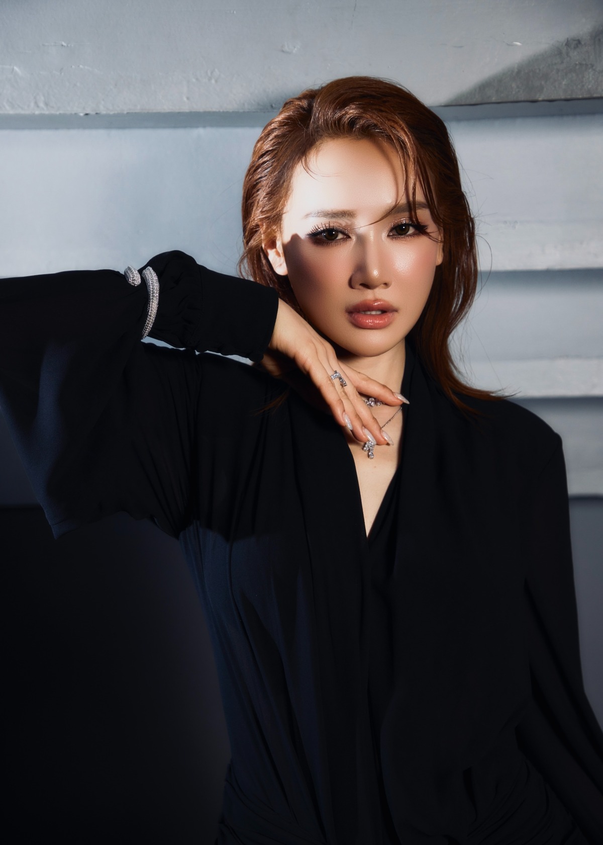 Diễn viên Diệp Bảo Ngọc phối "cây" đen dự show.