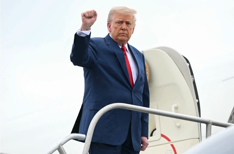 Tổng thống Donald Trump chuẩn bị bước vào chuyên cơ Không lực Một tại sân bay Morristown, New Jersey, hôm 8/6. Ảnh: AFP