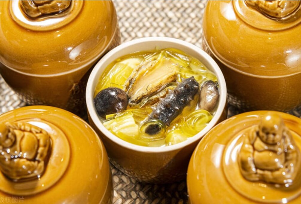 Phật nhảy tường là món ăn truyền thống nổi tiếng ở tỉnh Phúc Kiến. Nguyên liệu đều là những thứ hảo hạng nhất, bao gồm bào ngư, hải sâm, sò điệp, vây cá mập, nấm hương và các loại thịt ngon nhất.