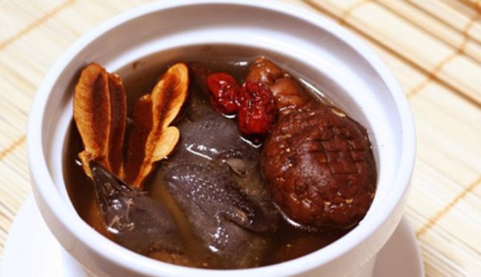 Canh nấm linh chi hầm gà ác hỗ trợ trị rối loạn tiền đình.