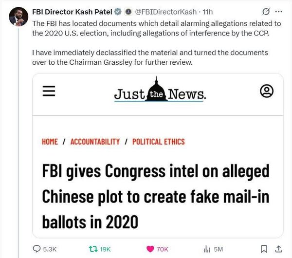 TIN NỔ LỚN: GIÁM ĐỐC FBI KASH PATEL TIẾT LỘ BẰNG CHỨNG GIAN LẬN CUỘC BẦU CỬ 2020
