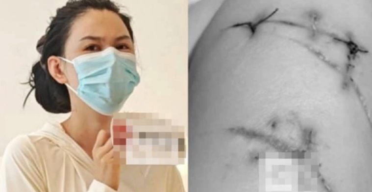 Cô Ma hồi phục sức khỏe sau thời gian điều trị tại bệnh viện ở Hàng Châu (bên trái) và một số vết thương đã được khâu (bên phải). Ảnh: Weibo