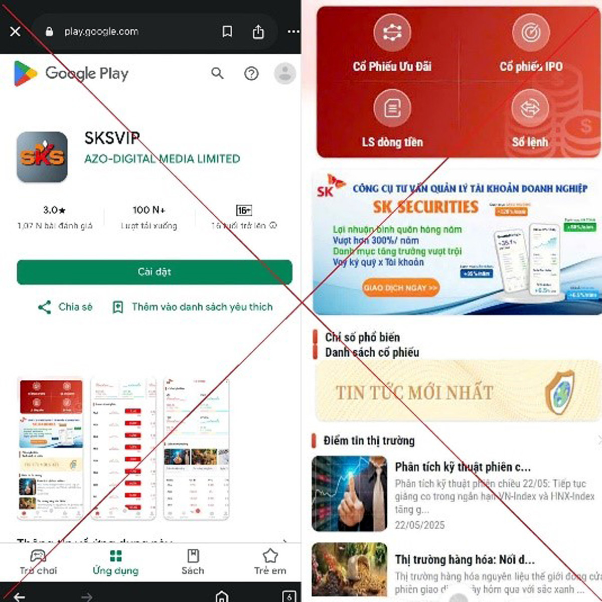 Giao diện ứng dụng lừa đảo SKSVIP giống ứng dụng giao dịch chứng khoán thật. Ảnh: CACC.