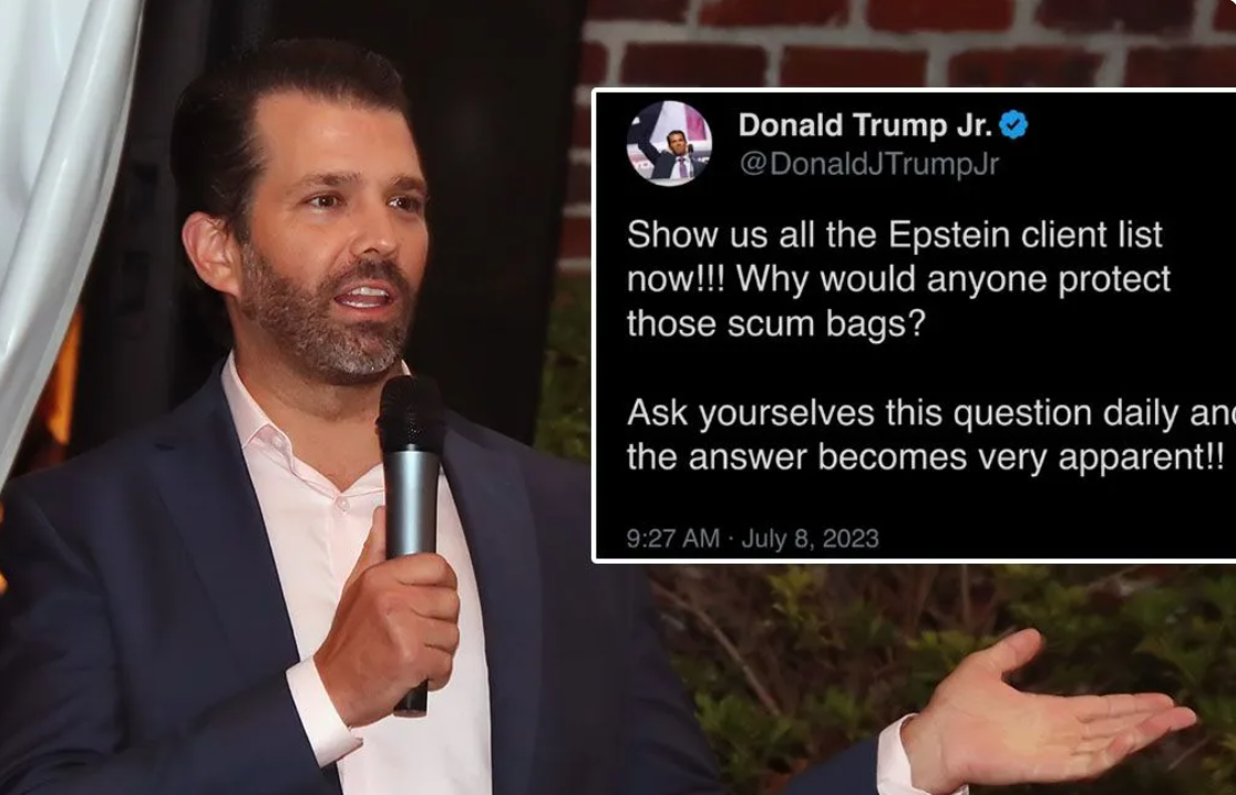 Old  Default Don Jr: "Cho chúng tôi xem 'Epstein Client List' ngay!!! Tại sao lại có người bảo vệ những kẻ cặn bã đó chứ? - Nay cha hắn đang KHÔNG công bố...