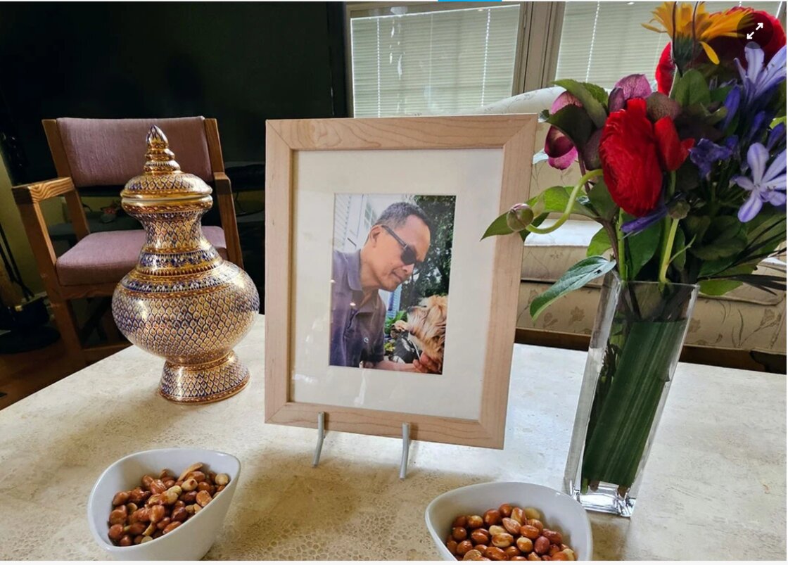 Chân dung Thongbue “Bue” Wongbandue được trưng bày tại lễ tưởng niệm vào tháng 5. Ảnh: Reuters.