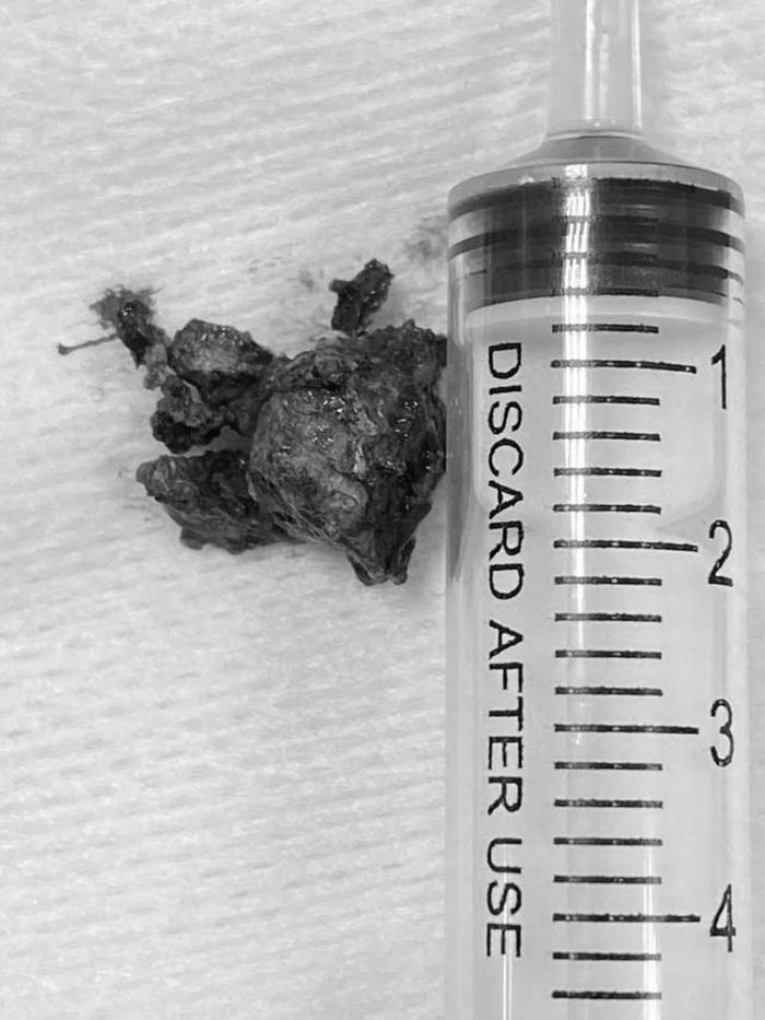 Sau khi hội chẩn, ê-kíp bác sĩ gồm BS.CKI Lý Văn Ngọt - Khoa Tai Mũi Họng, BS.CKII Đỗ Ngọc Lâm - Trưởng khoa Phẫu thuật & Gây mê hồi sức đã tiến hành nội soi và lấy ra là 01 viên sỏi kích thước khoảng 1cm, đã bám mủ. Thủ thuật được thực hiện an toàn. Bệnh nhân ổn định sau can thiệp.