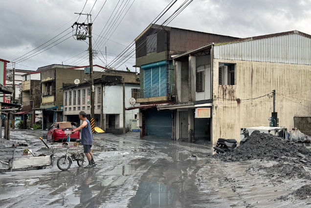 Một tuyến đường tại huyện Hoa Liên (Đài Loan) bị ngập trong bùn sau trận lũ