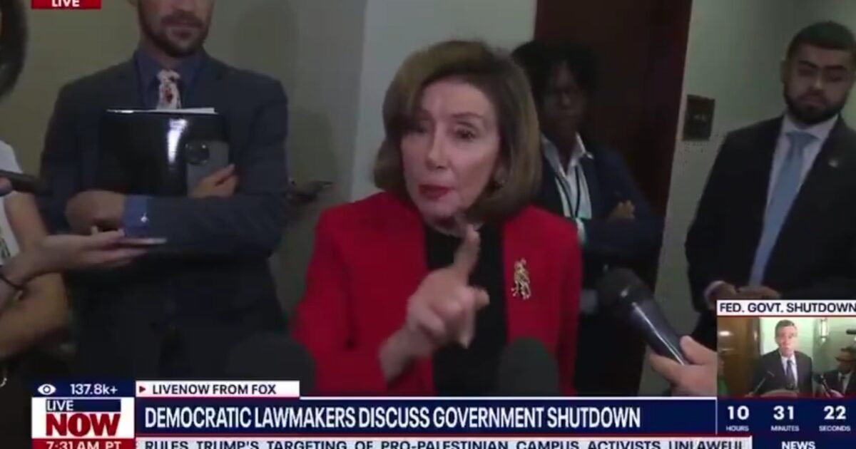 Pelosi trở nên kích động đến mức đồ trang sức của bà rung lên khi bà quát vào phóng viên hỏi bà về việc AOC yêu cầu các thượng nghị sĩ GOP đàm
