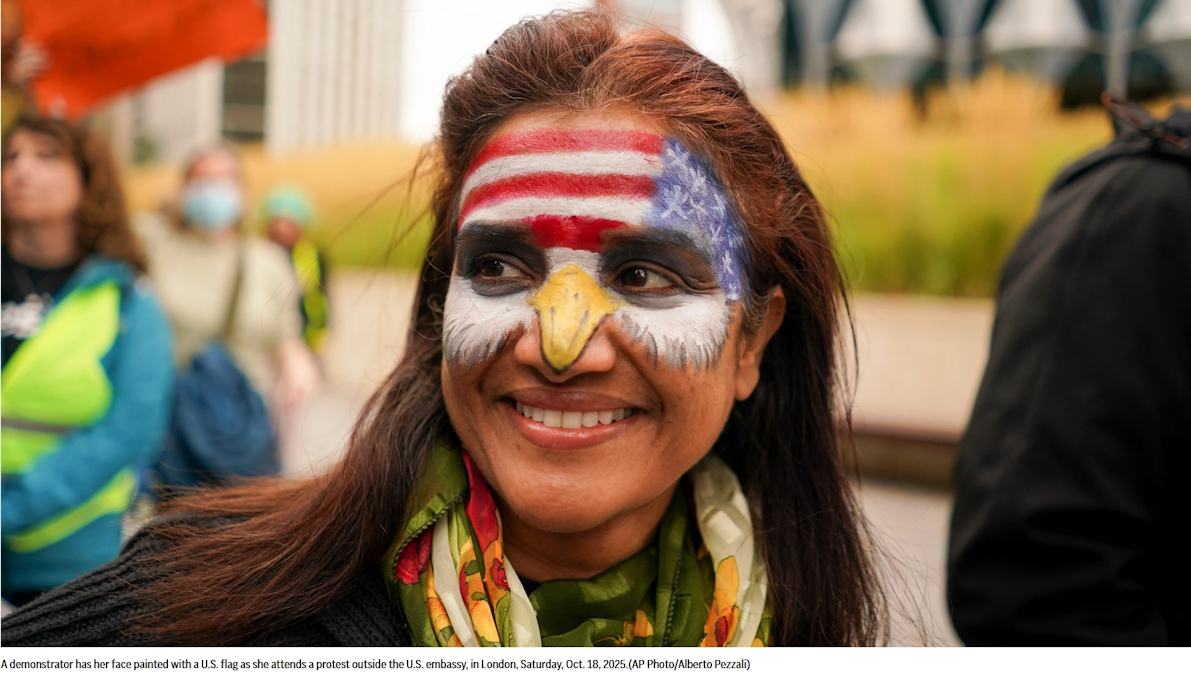 Protesting the country’s direction under President Donald Trump, thousands of people brought a street party vibe to the nation’s capital and communities across the U.S. for “ No Kings ” demonstrations, which the president’s Republican Party is calling “Hate America” rallies. Earlier Saturday, a few hundred Americans had gathered in major European cities like London and Paris.