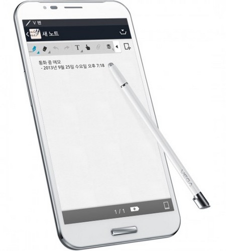 Giống với Galaxy Note của Samsung, Vega Secret Note cũng được trang bị cây viết cảm ứng với tên gọi V Pen để viết hay vẽ trực tiếp lên màn hình cũng như điều khiển chiếc smartphone được thuận tiện hơn.