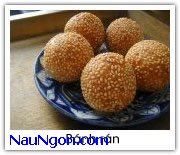 Để bột vào thau, trộn bột nổi, đường, tí muối cho thật đều, rây bột cho nhuyễn. Cho nước vào từ từ, nhồi thật mạnh tay , đến khi bột không dính vào tay nữa, nhúng khăn giấy đậy lên chậu bột , cho bột nghỉ 1 tiếng. Lấy bột ra bắt bánh. Chia bột cho thật đều , cán dẹp để nhân vào giữa se tròn, lăn vào mè.