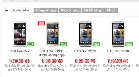 Ảnh chụp màn hình website H.M chào bán HTC One 16 GB với giá 11,9 triệu đồng.