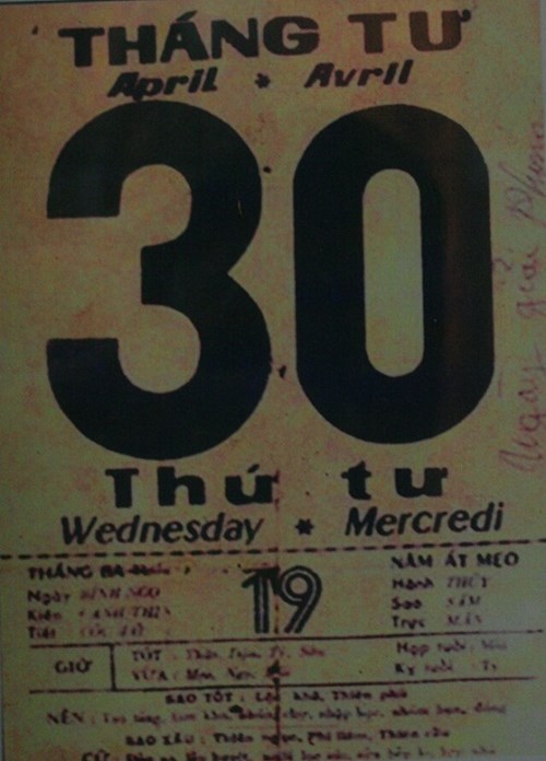Tờ lịch ngày Giải phóng Miền Nam. Ảnh: Giáo dục Việt Nam.