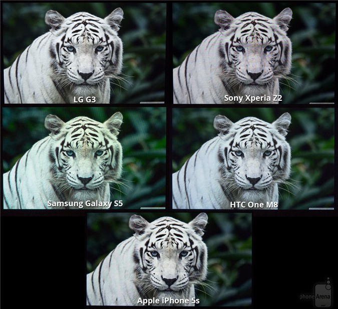 Nhiệt độ màu sắc quá cao, dẫn đến hình ảnh hơi có xu hướng ám vàng đã làm ảnh hưởng lớn đến điểm số chung của Galaxy S5. Điều tương tự cũng xảy ra với LG G3 khi chiếc smartphone này tỏ ra khá kém so với các đối thủ ở khả năng hiển thị ngoài trời. Trong khi đó, iPhone 5S tuy đã được ra mắt từ khá lâu vẫn cùng HTC M8 và Z2 vượt qua hầu hết các bài thử nghiệm với một con số ấn tượng.