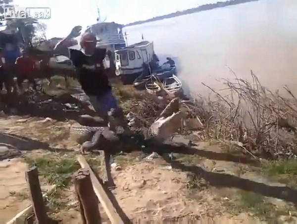 Trong đoạn video mới được tải lên trang LiveLeak, một người đàn ông đã suýt mất mạng khi cố gắng trêu đùa con cá sấu lớn.