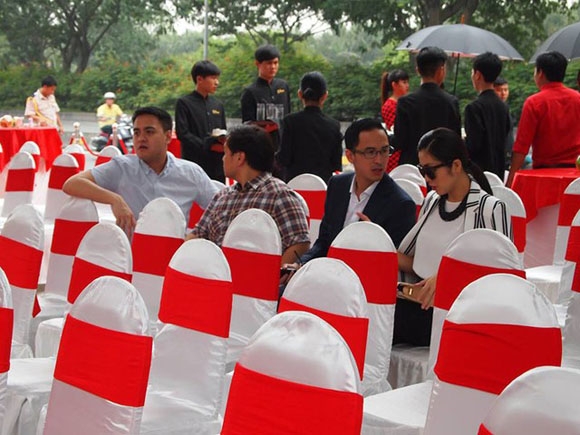 Vợ chồng Hà Tăng trong buổi lễ khai trương đại lý.