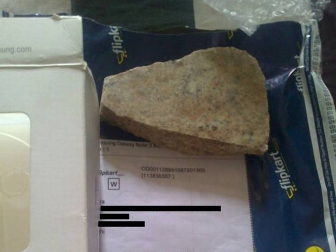 Một công dân tại thành phố Dwarka (Ấn Độ) đã đặt mua trên mạng một chiếc điện thoại Samsung Galaxy Note 3 từ Flipkart – một cổng mua sắm trực tuyến lớn của Ấn Độ. Sáng nay (1/11), anh nhận về một chiếc hộp trong đó là một cục đá lớn.