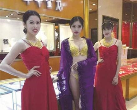 Vừa qua, một tiệm vàng ở tỉnh Nhạc Thanh, Ôn Châu, Chiết Giang đã thiết kế ra những bộ nội y tinh xảo làm toàn bằng vàng ròng. Để quảng bá cho sản phẩm mới này, chủ cửa hàng đã thuê một số người mẫu tới mặc trang phục đắt giá này và trình diễn catwalk ngay tại cửa hàng.