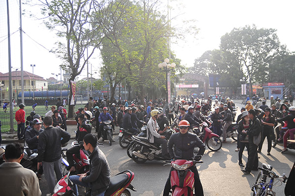 Rất đông CĐV và phe vé tập trung trước cổng sân Lạch Tray