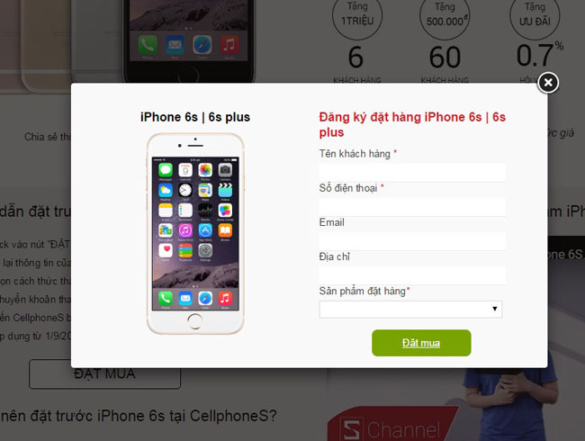 Ví dụ tại CellphoneS, để trở thành người đầu tiên sở hữu iPhone 6S, 6S Plus, 6 người đặt mua đầu tiên tại hệ thống này được ưu đãi giảm 1 triệu đồng, 60 người tiếp theo được giảm 500.000 đồng, ngoài ra còn giảm giá cho thành viên VIP…