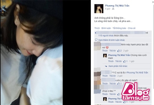 Sau đó, Nhã Phương cũng gây chú ý không kém khi đăng một bức ảnh dựa vào vai một người đàn ông và viết: “Anh không phải là sông lớn. Là sông nhỏ luôn chảy về phía em“. Việc Trường Giang nhận là ‘sông nhỏ’ và Nhã Phương gọi chàng trai mà mình ‘dựa dẫm’ là ‘sông nhỏ’ khiến các fan hầu như chắc chắn hai người đang nói về nhau.