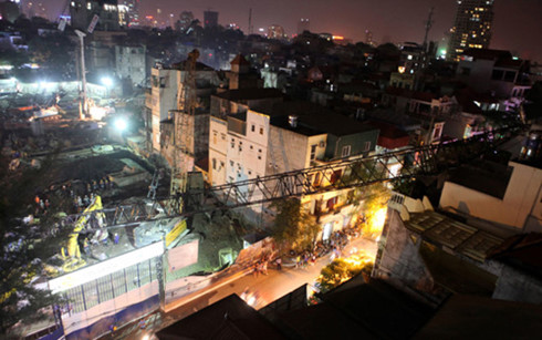Vụ đổ cần cầu xảy ra tại khu vực bãi đỗ xe tại khu vực xây dựng Dự án tổ hợp dịch vụ thương mại, căn hộ và bãi đỗ xe ở 69 Thuỵ Khuê, Hà Nội.