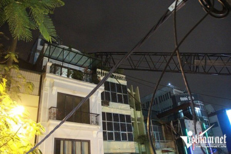 Khoảng 19h30 tối 18/10, một cần cẩu thi công Dự án tổ hợp dịch vụ thương mại, căn hộ và bãi đậu xe tại số 69 Thụy Khuê, Q.Tây Hồ, Hà Nội bất ngờ đổ ngang qua đường, đè nóc nhà đối diện.