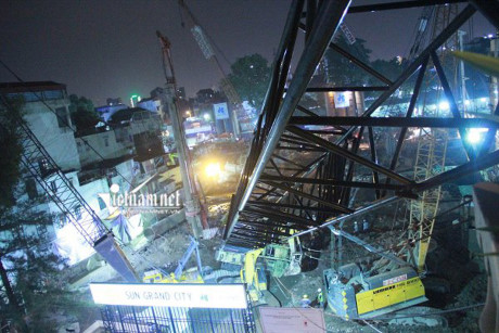 Hiện trường vụ sập cần cẩu. Ảnh: Tuấn Phùng/Tuổi trẻ