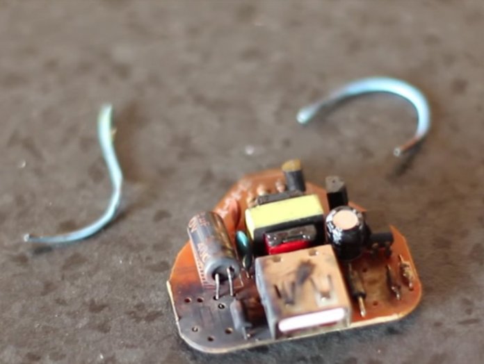 Đồ sạc điện đóng nhãn Apple bị nổ mà người dùng cho biết đã mua từ trên mạng.