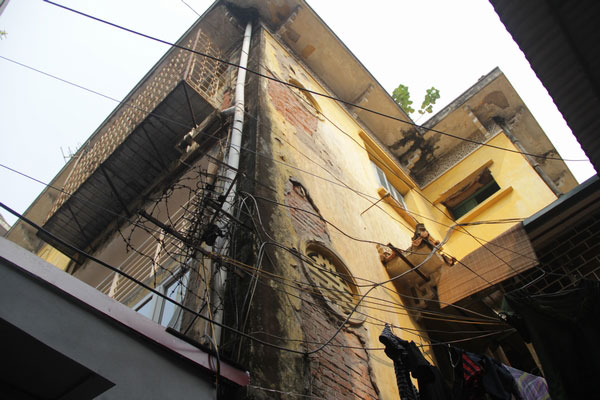 H́nh ảnh xuống cấp của ngôi biệt thư 65 Nguyễn Thái Học khi đoàn công tác thuộc Sở Xây dựng Hà Nội khảo sát hiện trạng xuống cấp trầm trọng của ngôi biệt thự này hôm 21/10/2015.