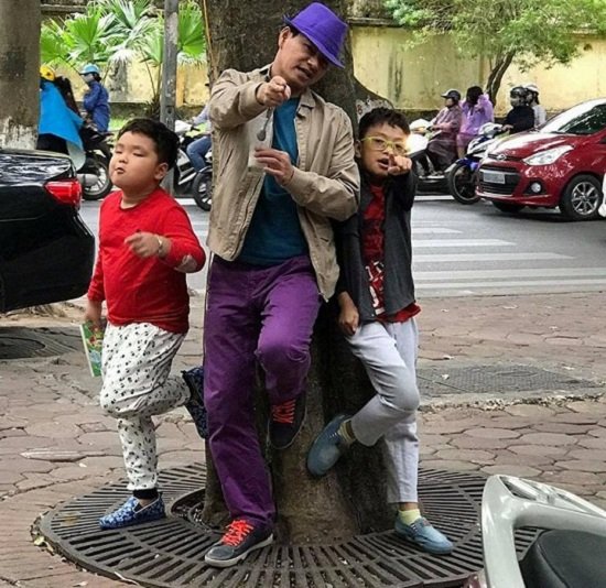 Xuân Bắc cùng con trai đi ăn chè vỉa hè: “Ngày chớm đông, anh ấy đi ăn chè và bị bắt ạ. Quá đen mặc dù ăn chè hạt lựu”.