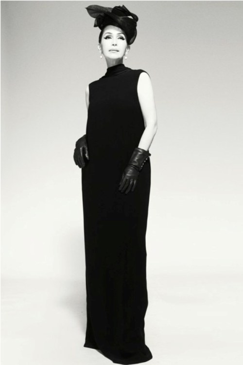 Với lối kẻ mắt mèo đặc trưng của thời trang những thập niên 50, tông màu đen lại càng làm tôn lên nét hoài cổ xuyên suốt bộ ảnh.