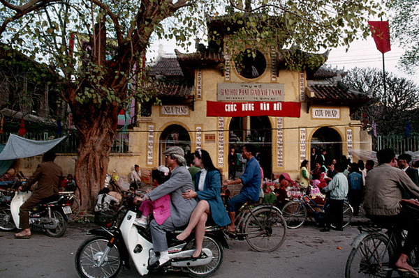 Cảnh mua bán tấp nập phía trước chùa Quán Sứ, Hà Nội.