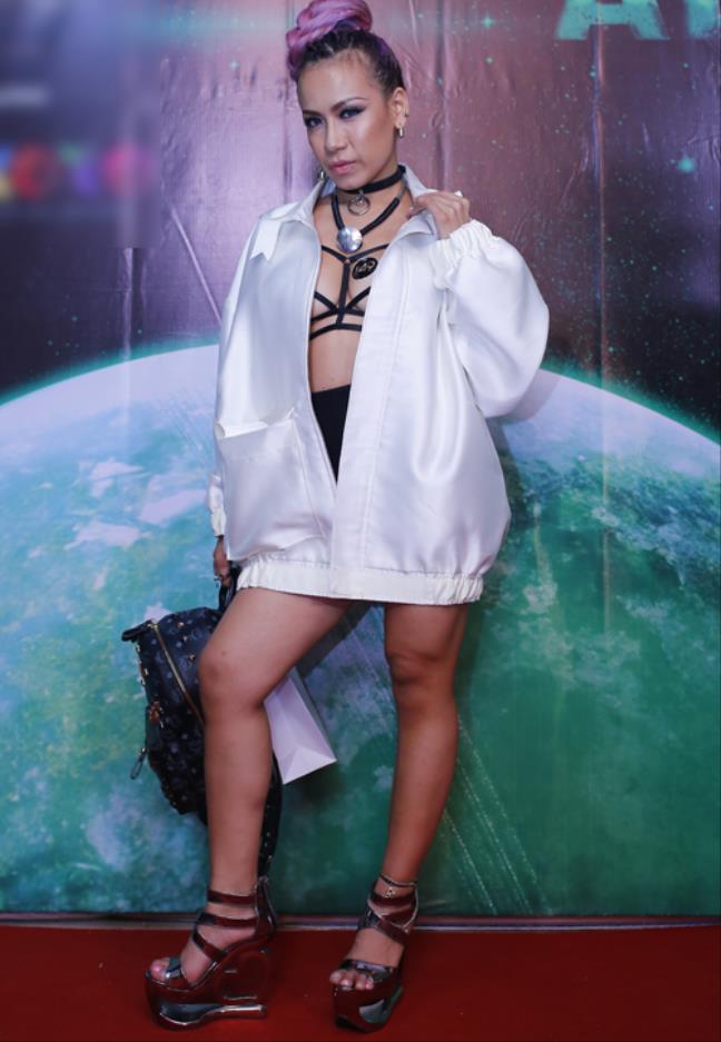 Stylist Ly Skeli gây choáng với bộ trang phục hở bạo, nếu cử động mạnh cô có thể bị lộ vòng một khi diện nội y siêu mảnh.