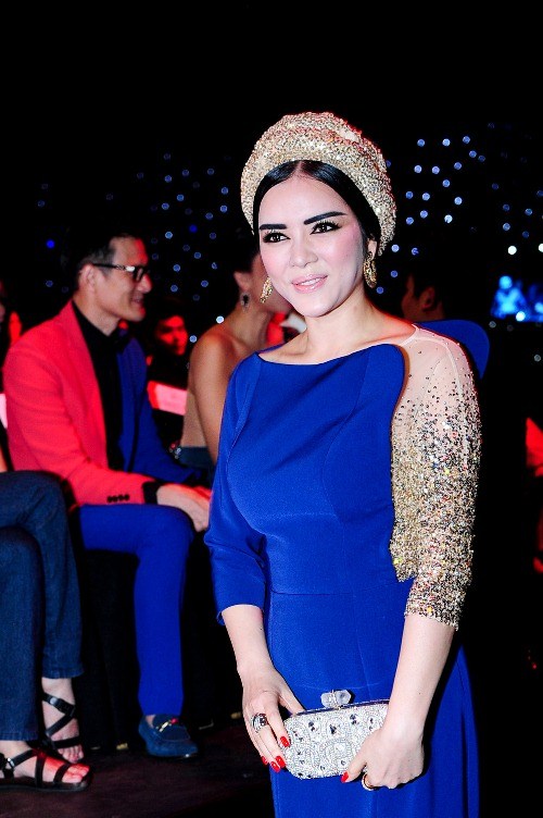 Lý Nhã Kỳ đã rất tinh tế khi lựa chọn một bộ đầm dạ hội màu xanh cobalt hàng hiệu rất sang trọng và khá nổi bật. Tuy nhiên, người đẹp lại sử dụng chiếc khăn quấn turban trên đầu và kiểu trang điểm siêu đậm không mấy ăn nhập với chiếc đầm dạ hội cho lắm.
