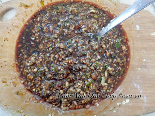 Bước 1: Phần hành trắng, ngò, tỏi, hành tím và tiêu cho vào cối giã nhuyễn (giã thì ướp thịt sẽ thơm hơn). Cho hỗn hợp này vào tô cùng các gia vị phía trên trộn đều.
