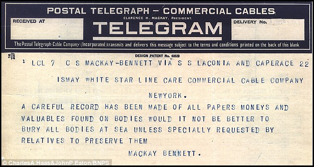 Tất cả những thi thể của hành khách hạng ba đều bị ném xuống biển để dành chỗ cho những thi thể của khách VIP hạng nhất và hạng hai, theo Daily Mail. Dòng điện tín gửi giữa tàu Mackay và công ty White Star Line quản lý tàu Titanic đã hé lộ bí mật động trời này.