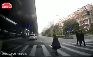Một phụ nữ đang san đường thì gặp xe hơi. Cô ta ngã lăn ra mặc dù chưa xảy ra tai nạn. Gặp phải cảnh tượng này tài xế đúng là không biết nên khóc hay nên cười.