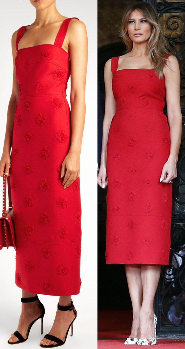 Vốn xuất thân là người mẫu có tiếng trong quá khứ, bà Melania còn tinh tế kết hợp mẫu váy đỏ rực này với mẫu giày So Kate đến từ thương hiệu Christian Louboutin. Thiết kế mũi nhọn cùng phần gót cao 12cm đã giúp tôn lên vóc dáng siêu chuẩn Đệ nhất phu nhân.