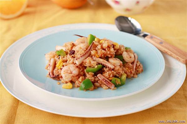 Món cơm chiên hải sản luôn được lòng các thực khách bởi phần cơm nóng hổi, đậm gia vị cùng với tôm, mực dai ngon cùng rau củ hấp dẫn như ớt chuông và hạt ngô. Các nguyên liệu quyện đều với nhau thật hợp vị, ăn mãi mà chẳng ngán! Tận dụng cơm nguội để làm món cơm chiên hải sản vừa ngon vừa đủ chất thế này thì cả nhà đều gật gù yên tâm!