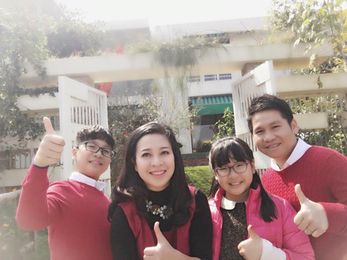 Bà xã Trọng Tấn dù đã là bà mẹ hai con nhưng trông cô cực kì trẻ trung và hiện đại. Thanh Hoa thậm chí còn có chiều cao nhỉnh hơn chồng chút ít.