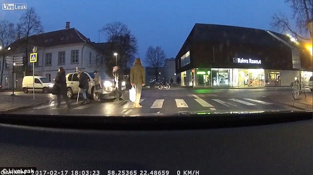 Thấy thế, cụ bà vội vàng giơ tay ra hiệu nhưng người đàn ông lại không hiểu ý. Chỉ đến khi những người đi đường xung quanh lớn tiếng cảnh báo thì người đàn ông này mới giật mình xoay người lại, dùng chân cố ngăn chiếc xe nhưng không được.