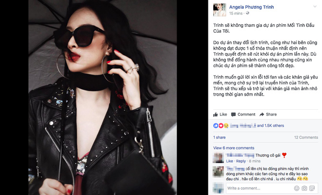 Mới đây, Angela Phương Trinh đã thông báo trên facebook của mình rằng cô sẽ không tham gia dự án Mối Tình Đầu Của Tôi, phiên bản Việt hóa của She Was Pretty. Bên cạnh đó, cô còn gửi lời xin lỗi người hâm mộ vì lần lỡ hẹn này, cũng như chúc mừng thành công đến dự án Mối Tình Đầu Của Tôi.