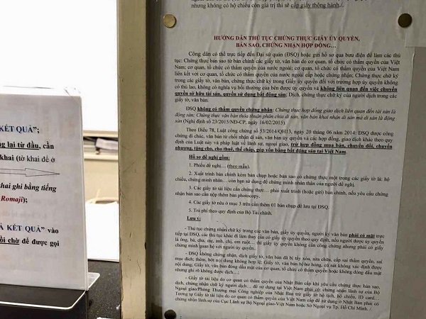 ĐSQ Việt Nam tại Nhật Bản cho hay có thông tin hướng dẫn cụ thể tại phòng tiếp dân của ĐSQ.