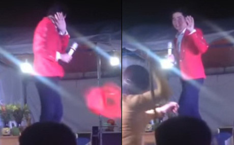 Hoai Linh bị chọi đá, nghệ sĩ bị ném trên sân khấu, phản ứng của nghệ sĩ, Trường Giang bị ném chai, Tuấn Hưng